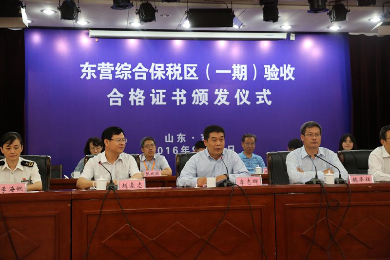9月26日上午,東營綜合保稅區(qū)(一期)正式通過由中國海關(guān)總署牽頭、國家十部委組成的國務院聯(lián)合驗收組的驗收,并獲頒驗收合格證書。